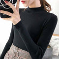 Autumn Winter Mock Neck Women Sweater Vintage Basic Solid Knitted Tops Casual Slim Pullover Korean Sweaters Simple Chic Jumpers